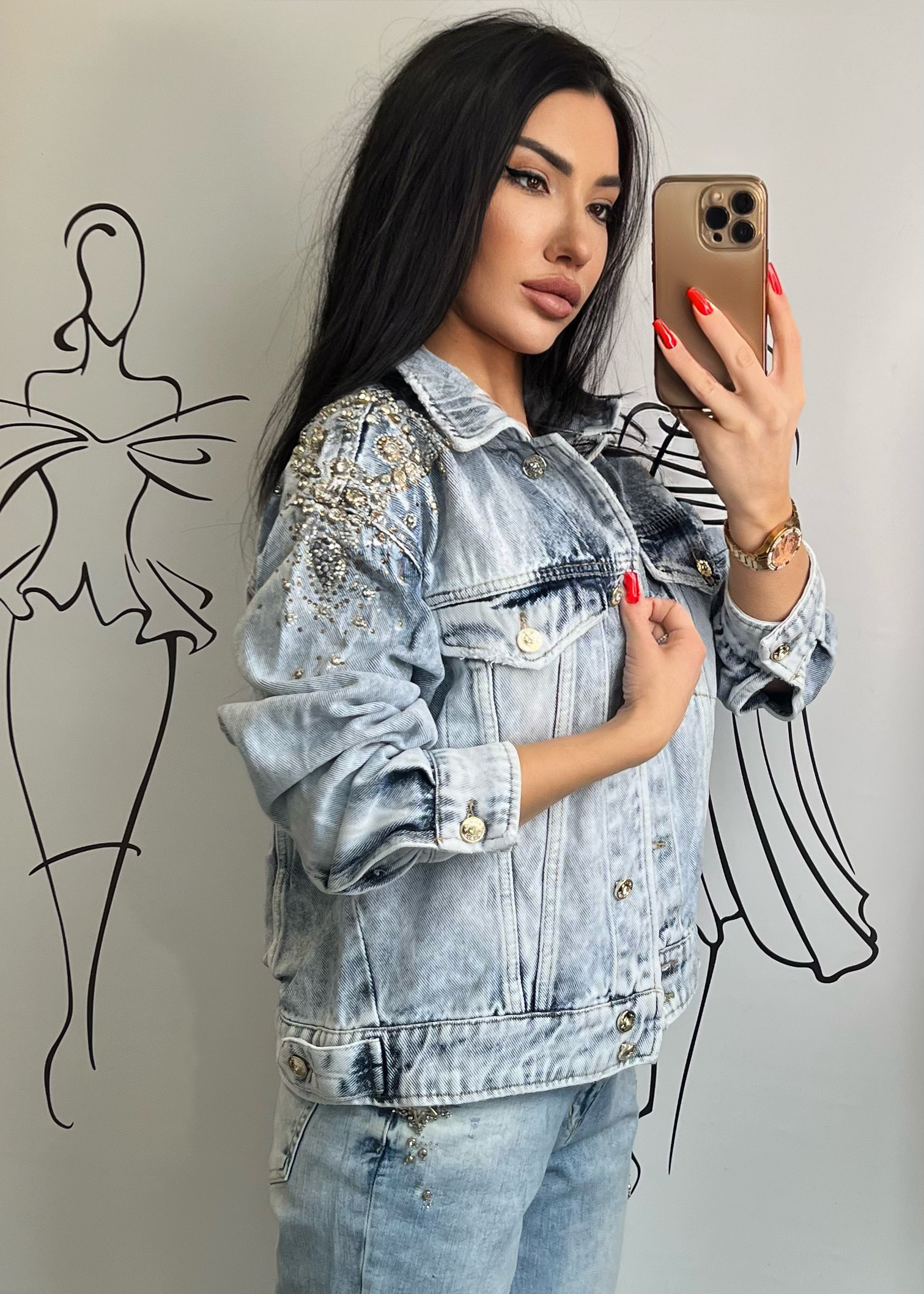 Jasno – niebieska jeansowa katana z marki DSHE. Oryginalna katana idealnie sprawdzi się przy codziennych stylizacjach. Przepięknie zdobiona wysokiej jakości kryształkami, charakterystycznymi dla marki. Wysokiej jakości wykonanie oraz design sprawia, że katana jest wyjątkowa i niepowtarzalna.