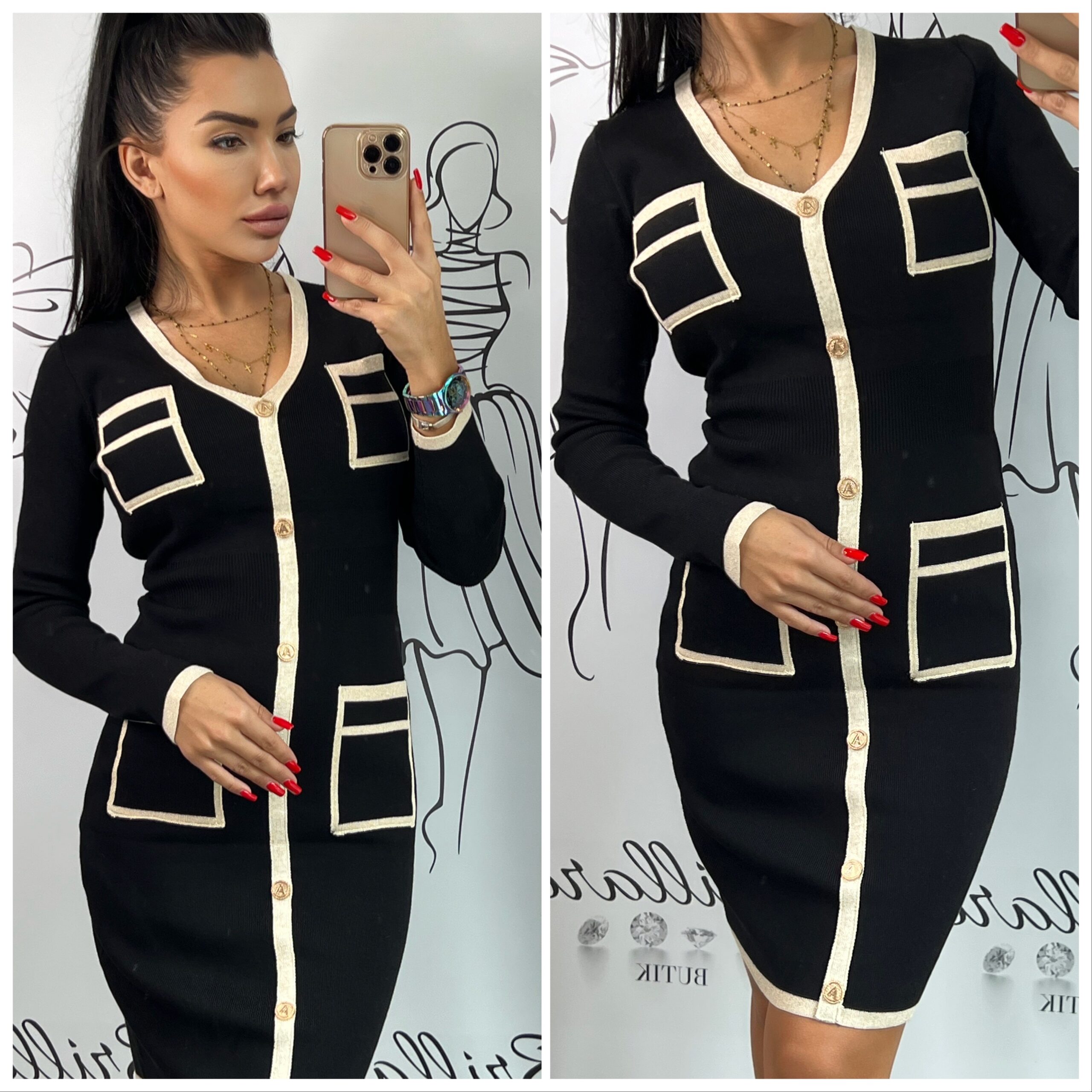 Dzianinowa sukienka wykonana z bardzo elastycznego dzianinowego materiału.
