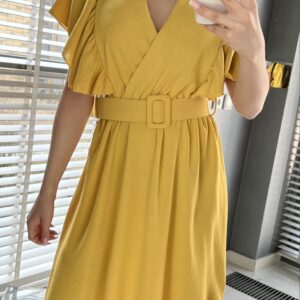 Sukienka midi z paskiem musztardowa